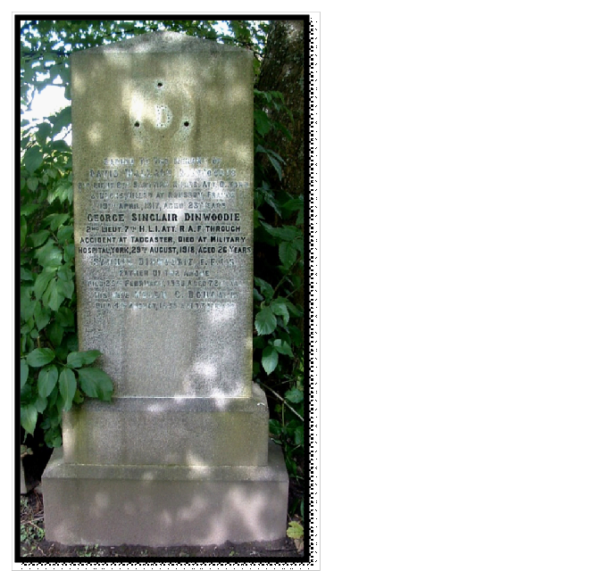 Second Lieutenant George Sinclair Dinwoodie, attached to the Royal Air Force, was accidentally killed while flying in England. He was the second son of Mr. S. Dinwoodie, 274 Batch Street, Glasgow and was born 23 years ago at the Schoolhouse, Kirkmichael, Dumfriesshire. He was educated at Whitehill Higher Grade School, Glasgow and in civil life was engaged with Messrs. Dykes & Morton, John Street. Joining the Highland Light Infantry in December 1916, he was twice wounded. In August of last year he received his commission and was afterwards attached to the Royal Air Force. His younger brother, Second Lieutenant D. W. Dinwoodie was killed last year.