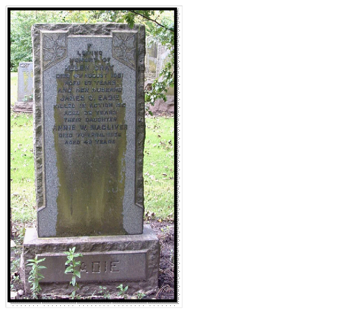 And her husband James C. Eadie killed in action 1915 aged 32 years