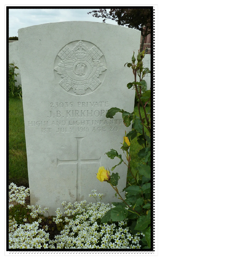 James Black Kirkhope, Private, 17th Battalion, Highland Light Infantry, No. 23035. Killed in Action 1st July 1916