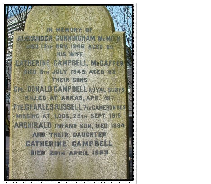 Cpl. Donald Campbell, Royal Scots killed at Arras, April 1917